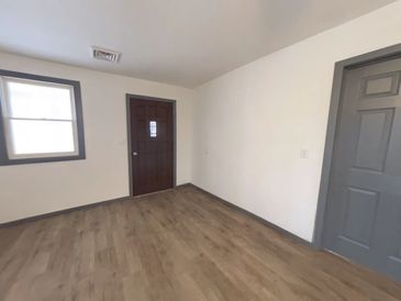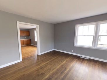 Home is 2 bed, 1 bath, with a large living room and kitchen. Dedicated laundry room with entry from parking area. All living areas are hardwood.
